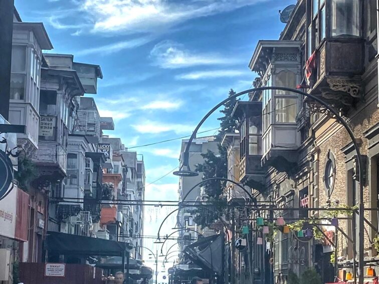 Halamların Gazi Kadınlar Sokağı’ndaki Rum evine taşınmaları ise küçük kuzenimin doğumuna denk gelir. Bu ev daha da büyük, merdivenleri dik ve çok basamaklı. Burada trabzandan kaymak daha zevkli ama daha da tehlikeli. Birkaç kez düşüp kafamı yardığımı da çok iyi hatırlıyorum. Ev sahibi Melek Hanım yarı Rum. Çok iyi bir kadın ama kızı çok huysuz. Biraz gürültü yapsak hemen aşağıdan sesleniyor. Merdivenlerin ortasına gelince ortada bir kat, biraz daha çıkınca da halamların girişi. Burada bir camlı kapı daha var. Ondan sonra sahanlık. Sahanlığın tabanını halamın artık kumaşlardan saç örgüsü şeklinde örerek yaptığı rengarenk yuvarlak kilim süslüyor. (Daha sonra aynısını ben de yapmıştım.) Sahanlığa açılan dört kapı var. Her biri şimdiki evlerin salonu büyüklüğündeki odaların misafir odası olanından cumbaya çıkılıyor. Sağ tarafı Kıbrıs Şehitleri’ni, sol tarafı ikinci Kordon’u gören cumbanın giyotin pencerelerinden aşağıya baktığımızda sokakta yemek masaları, barlar, kafeler yok o zamanlar. Evin arka tarafında tren vagonu gibi dizilmiş üç odanın ardından gelen mutfağın dört bir yanına sardunya saksıları dizilmiş balkonuna çıkınca ise şu an yerinde başka bir işyeri olan Ar Sineması’nın kocaman perdesi çıkıyor karşımıza. Her akşam başka bir filmi balkondan seyretmek ise büyük bir keyif. Balkonda yenilen akşam yemeğinden sonra, masa kenara çekilir, sandalyeler kişi sayısına göre iki ya da üç sıra dizilir, herkese küçük plastik tabaklarda çiğdem verilir, filmin başlaması sabırsızlıkla beklenirdi. İzlerken birkaç kez “Filmin kopması” çok alıştığımız bir durumdu. Evin içinde Aybars’ın bisiklet ile dolaşması ise ayrı bir konu. Ev o kadar büyük ki; küçücük bacakları ile evin bir başından diğer başına gidene kadar yorulduğu için kendince böyle bir formül bulmuş. Şu an o evin yerinde yeller esiyor denir ya… Öyle değil. Yerinde bir restoran var. Girişteki o güzelim mermerler, merdivenlerdeki ahşap oymalar, yüksek tavanlardaki süslemeler, pencerelerin üstündeki süslü pervazlar, yerlerdeki mozaikler yok artık. Koskoca sokakta yıkılan birkaç evden biri o. Yerlerine yapılanlar da birkaç kötü görüntülü bina…