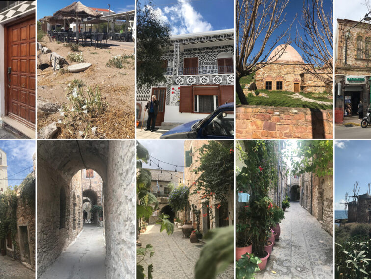 Adanın iç kesimlerine girdikçe, geleneksel Yunan köyleri ile karşılaşıyorsunuz. 14. Yüzyıl’dan beri var olan bir Orta Çağ köyü olan Mesta’da kalenin içindeki her ev birbirine bağlı. Mestalılar korsan saldırılarından korunmak için yüzyıllar boyunca birbirine kenetlenmiş gibi yan yana duran taş evlerde hayatlarını sürdürmüşler. Adeta bir film dekorunun içinde yürüyorsunuz gibi bir his veren bu daracık sokaklarda yapıların pek çoğu günümüzde otel ya da kafe restoran olarak hizmet veriyor.